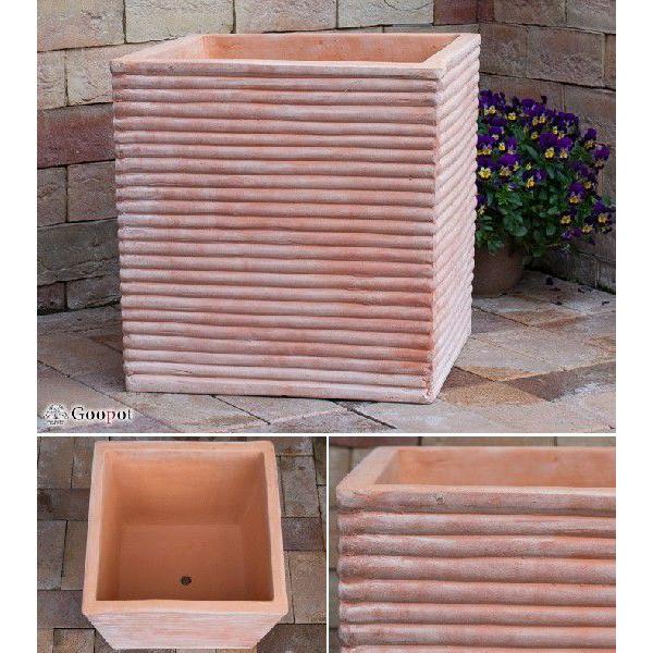テラコッタ 鉢 特大-植木鉢 大型 おしゃれ テラコッタ 鉢 四角 送料無料 。横縞 キューブ型 素焼き鉢 テラコッタ 鉢 特大 42cm 〔対角線の長さ60cm〕 46リットル メーカー直送·日時指定不可·同梱不可·代引不可·返品不可輸入★独特の質感をもつテラコッタ・素焼き鉢。 時とともに変わる風合いを楽しめます。 プランタープロショップのトップページ テラコッタ素焼鉢 当店で扱うテラコッタはすべてハンドメイド! こだわりの逸品です。 アジア製のマシーンメイドとは